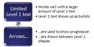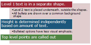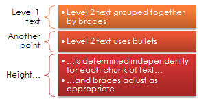 Vertical Bracket List Use to show grouped blocks of information. Works well with large amounts of Level 2 text. | |