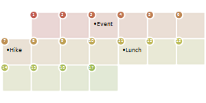 Simple Calendar Use for showing a simple calendar of events. Level 1 text is the date and Level 2 text represents the associated event. | |