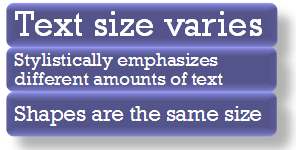 Varying Text List Use to stylistically emphasize different amounts of text. Text size varies between shapes. | |